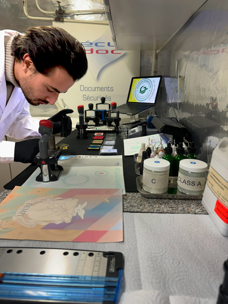 Nos documents sécurisés dotés de technologies invisibles intégrées au papier, et renforcées à l’impression, permettent une validation immédiate sans matériel sophistiqué ni formation particulière.